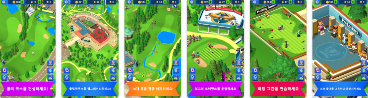 골프 클럽 거물이 되어 작은 땅을 녹색의 아름다운 골프 코스로 만들어서 최고급 골프 클럽에서 수백 명의 회원들이 플레이하게 해보세요. 세계 최고의 플레이어들을 토너먼트에 참여시키세요.