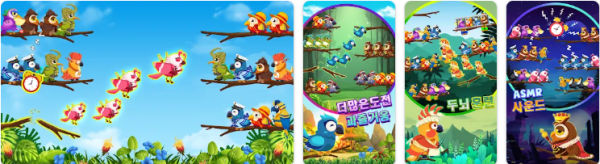 - 많은 도구가 도움이 될 수 있으므로 계속 지켜보세요. 뒤로 버튼을 사용하여 단계별로 되돌아가고, 추가 가지는 더 많은 공간을 제공하며, 섞어서 모든 새의 순서를 변경하고, 규칙을 어기면 2개의 다른 종류의 새를 나란히 배치할 수 있으며, 시간 카운터를 동결하면 급할 때 더 많은 시간을 줄 수 있습니다.