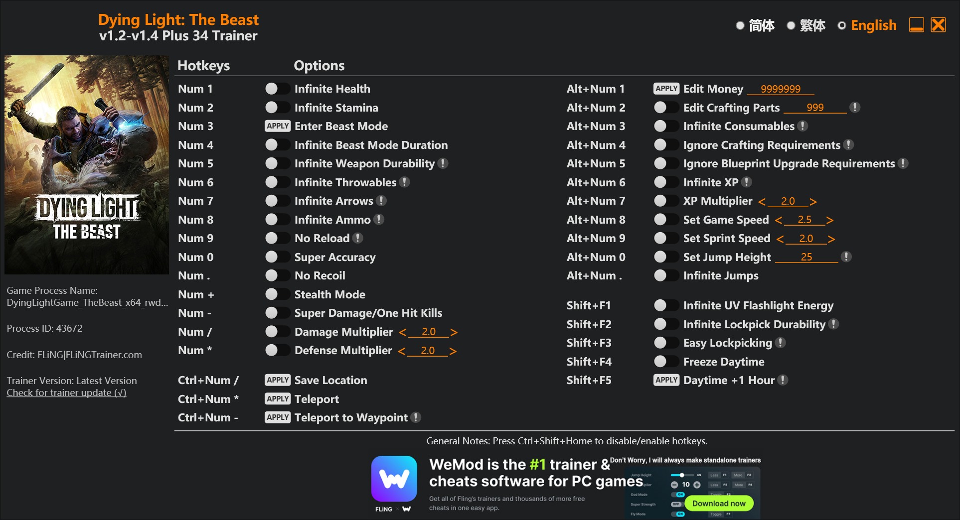다잉라이트 더 비스트 핵,치트/ 트레이너 v1.2-v1.4+ (Dying Light: The Beast Trainer)ㅣ무한 …잠시만 기다리시면 다운로드 링크가 나옵니다.