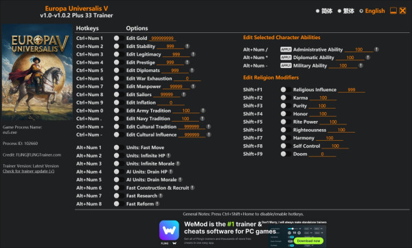 유로파 유니버설리스 V 핵,치트/ 트레이너 v1.0-v1.0.2+ (Europa Universalis V Trainer)ㅣ금편…잠시만 기다리시면 다운로드 링크가 나옵니다.