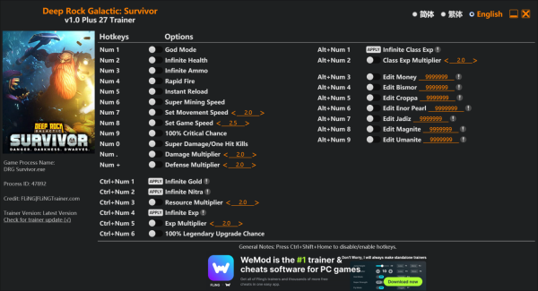 딥 락 갤럭틱 서바이벌 서클 핵,치트/ 트레이너 v1.0+ (Deep Rock Galactic: Survivor Trainer…잠시만 기다리시면 다운로드 링크가 나옵니다.