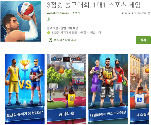**게임이름 3점슛 농구대회: 1대1 스포츠 게임