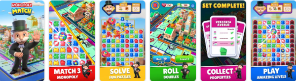 매치 3 퍼즐을 클리어하면 주사위를 굴릴 수 있습니다. 승리할 때마다 모노폴리 매치 보드로 이동하여 부동산을 모으고, 현금을 벌고, 집과 호텔을 지을 수 있습니다. 모든 퍼즐은 모노폴리 스타일로 성공할 수 있는 또 다른 기회처럼 느껴집니다.