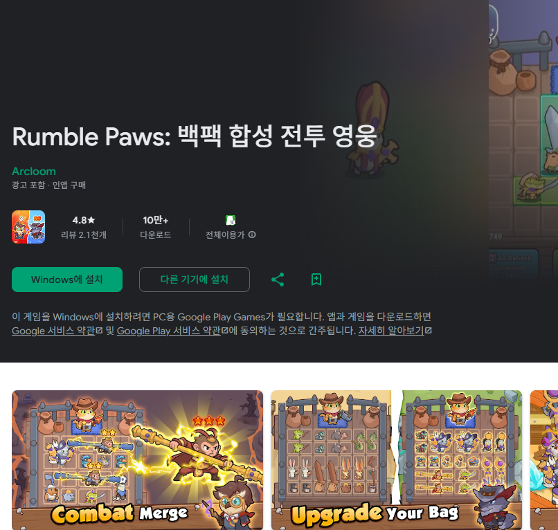**게임이름 Rumble Paws: Backpack Fight