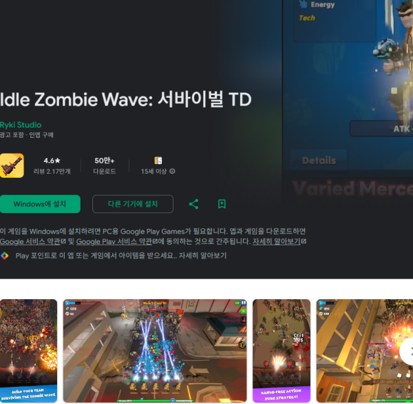 **게임이름 Idle Zombie Wave: Survival TD