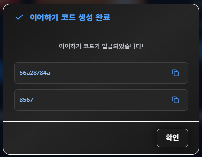 6. 계정 저장을 누르고 이어하기 코드를 생성 후 냥코에 적용시킨다