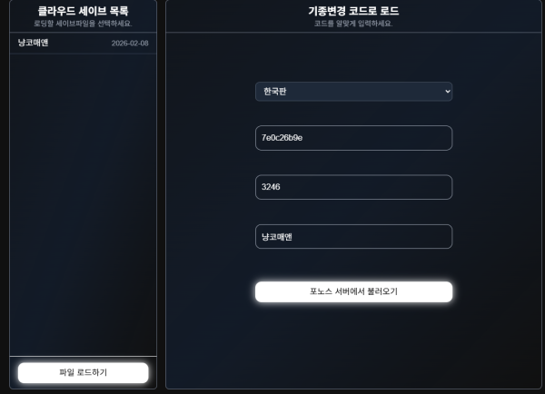3. 클라우드 세이브 목록에 파일명이 올라왔다면 로드를 한다.