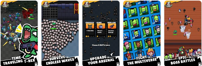 다이노 위드 어 건은 독특한 로그라이크 생존 RPG입니다. 당신은 단순한 공룡이 아닙니다. 파충류의 몸에 갇힌 인간, 잭스가 되어 새로운 세상을 지켜야 합니다. 타임머신은 당신을 과거로 데려다준 것뿐만 아니라, 다중우주로 통하는 포털을 열어버렸습니다! 이제 미니건을 들고 선사 시대를 침략하는 좀비, 뱀파이어, 해적, 로봇들을 물리쳐야 합니다.