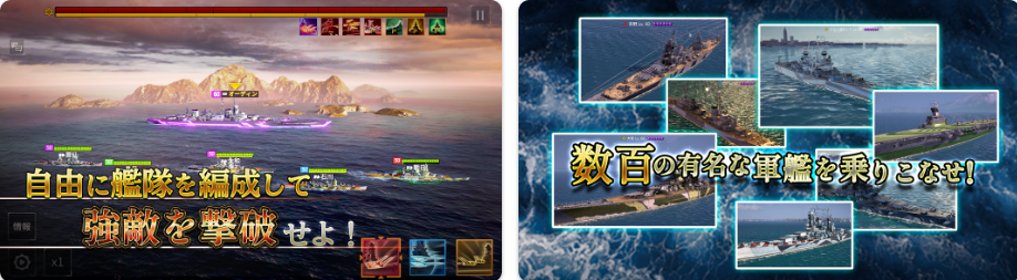 '무적의 함대 : 전함의 전설'에서는 역사상의 실제 군함을 모아 강력한 함대를 만들고 전략으로 막강한 보스를 쓰러뜨리고 다른 플레이어와 싸우며 누가 바다를 지배하는지 경쟁하는 것이 수 있습니다!