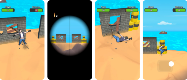 상대방과 번갈아 가며 한 사람은 숨고 다른 한 사람은 총을 쏜다. 엄폐물을 부수고 약점을 찾아 완벽한 샷을 준비하세요.