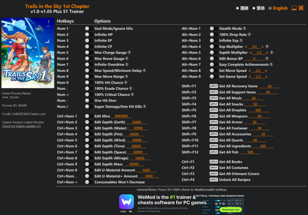 하늘의 궤적 1장 핵,치트/ 트레이너 v1.0-v1.05+ (Trails in the Sky 1st Chapter Traine…잠시만 기다리시면 다운로드 링크가 나옵니다.