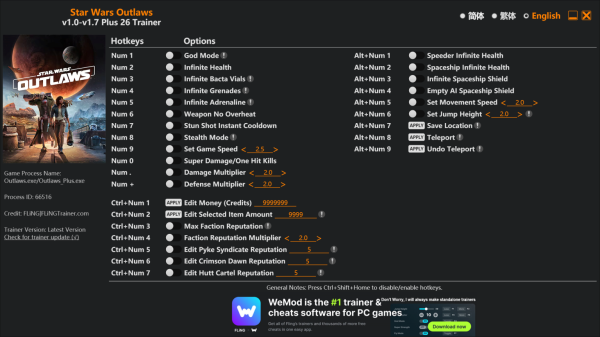 스타워즈 아웃로 핵,치트/ 트레이너 v1.0-v1.7+ (Star Wars Outlaws Trainer)ㅣ무적ㅣ무한 체력ㅣ무한…잠시만 기다리시면 다운로드 링크가 나옵니다.