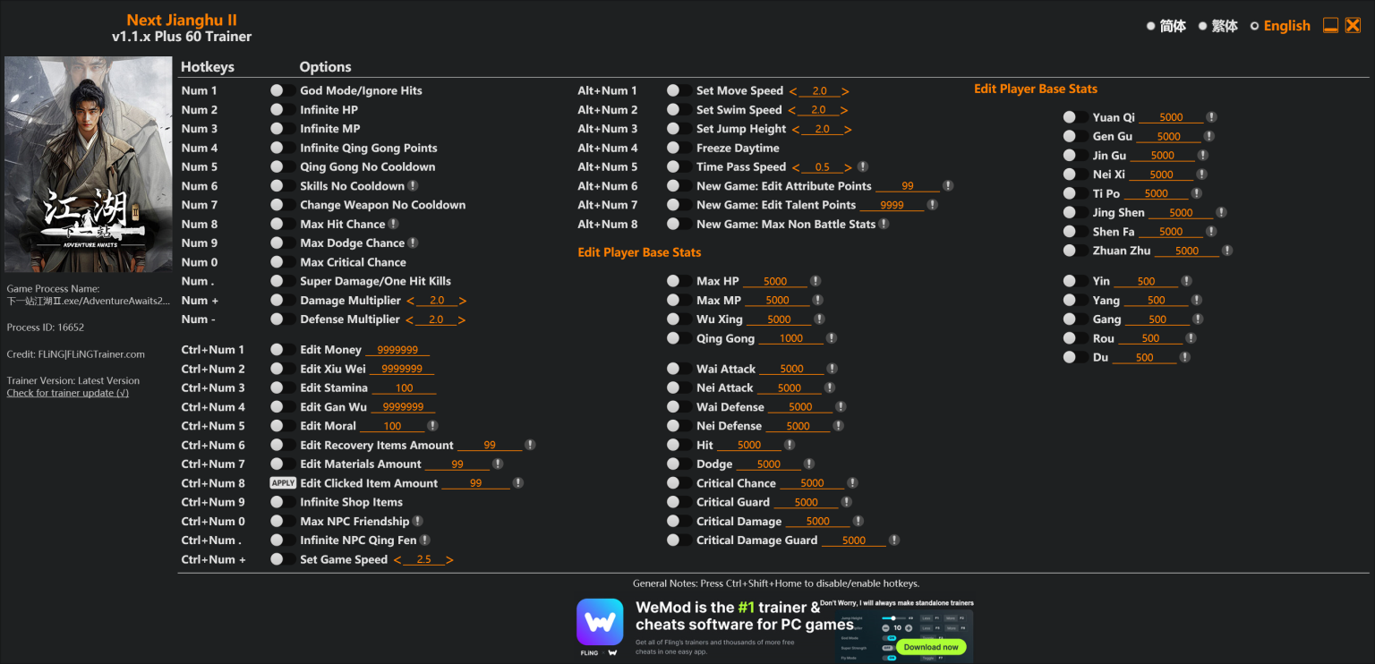 넥스트 강호 II 핵,치트/ 트레이너 v1.1.x+ (Next Jianghu II Trainer)ㅣ무적 모드ㅣ무한 HPㅣ무한 …잠시만 기다리시면 다운로드 링크가 나옵니다.