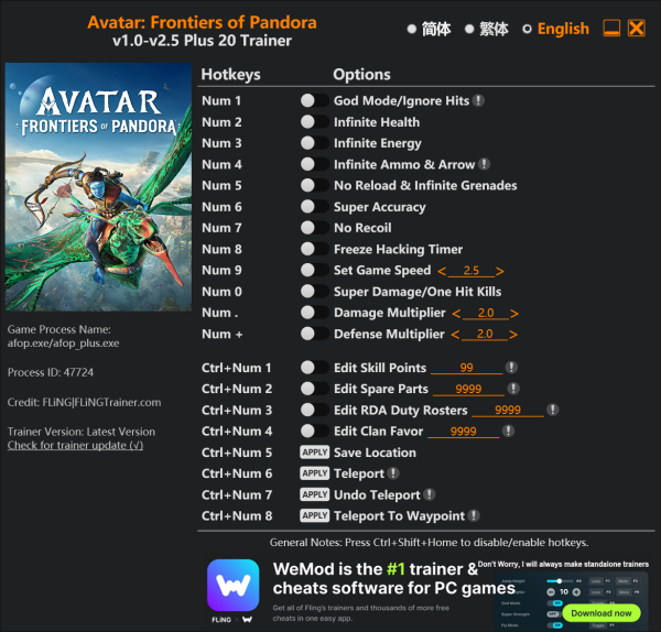 ** 아바타: 프론티어 오브 판도라 핵, 치트/ 트레이너 다운로드 링크
