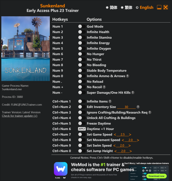 ** Sunkenland 핵, 치트/ 트레이너 다운로드 링크