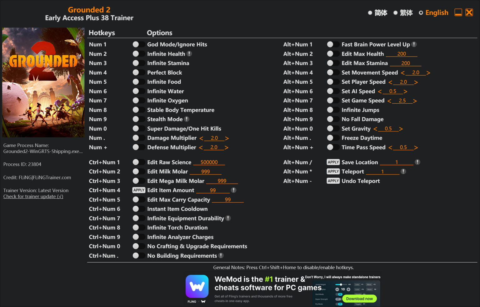 그라운디드 2 핵,치트/ 트레이너 vEarly Access+ (Grounded 2 Trainer)ㅣ무적 모드ㅣ무한 체력ㅣ무한 스태미나ㅣ완벽한 방어 등 38가지