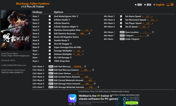 명말: 공허의 깃털 핵,치트/ 트레이너 v1.0+ (Wuchang: Fallen Feathers Trainer)ㅣ무적 모드ㅣ…잠시만 기다리시면 다운로드 링크가 나옵니다.