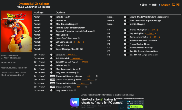 드래곤볼 Z: 카카로트 핵,치트/ 트레이너 v1.03-v2.20+ (Dragon Ball Z: Kakarot Trainer)…잠시만 기다리시면 다운로드 링크가 나옵니다.