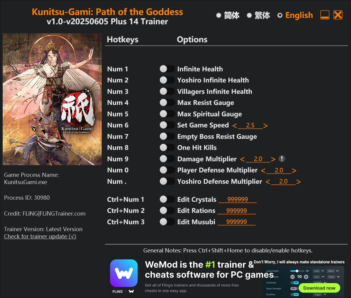 쿠니츠가미: 패스 오브 더 가디스 핵,치트/ 트레이너 v1.0-v20250605+ (Kunitsu-Gami: Path of t…잠시만 기다리시면 다운로드 링크가 나옵니다.