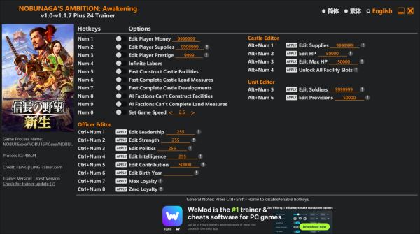 노부나가의 야망 핵,치트/ 트레이너 v1.0-v1.1.7+ (NOBUNAGA’S AMBITION: Awakening Train…잠시만 기다리시면 다운로드 링크가 나옵니다.