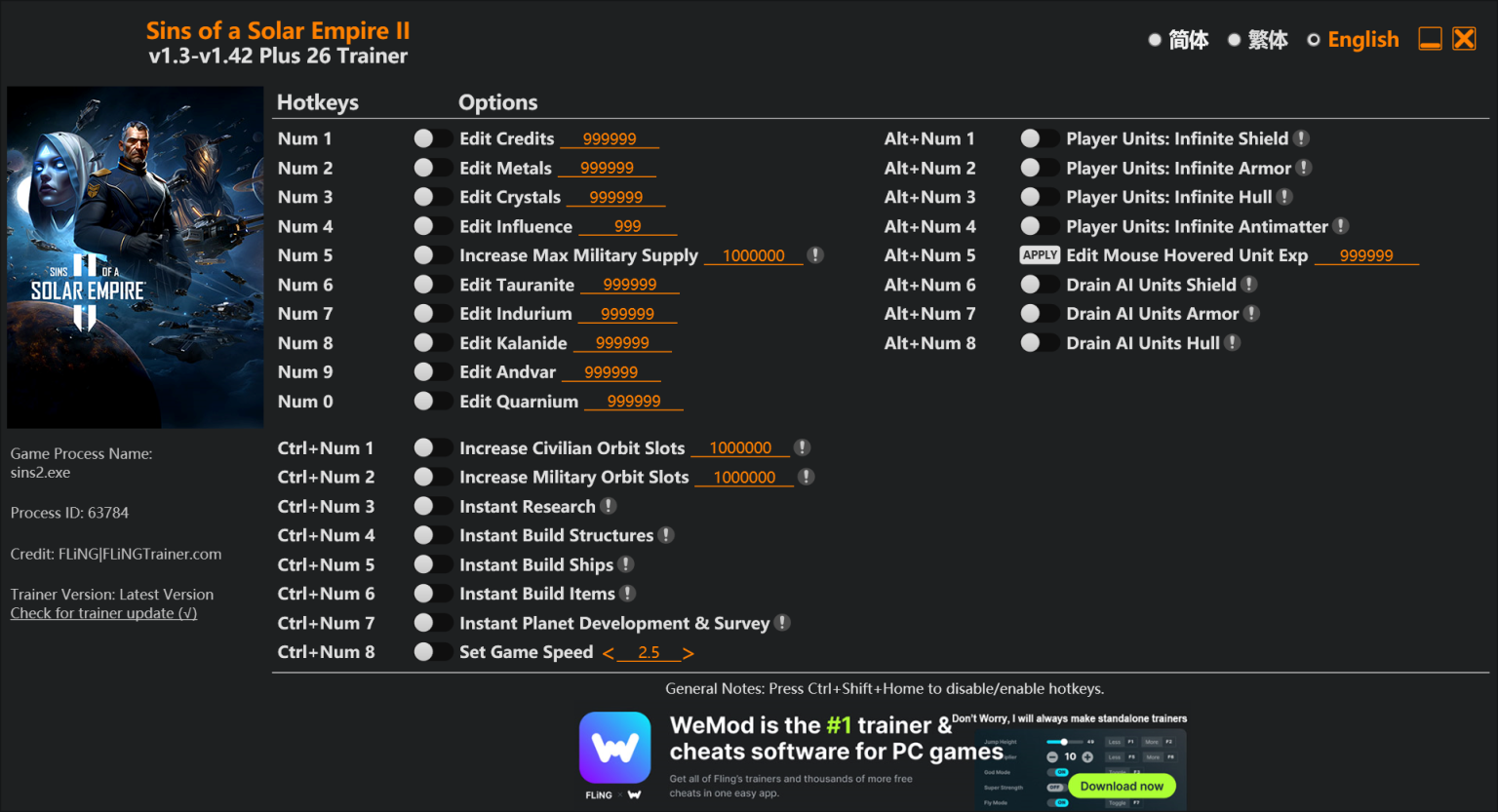 태양 제국의 죄악 II 핵,치트/ 트레이너 v1.3-v1.42+ (Sins of a Solar Empire II Trainer…잠시만 기다리시면 다운로드 링크가 나옵니다.