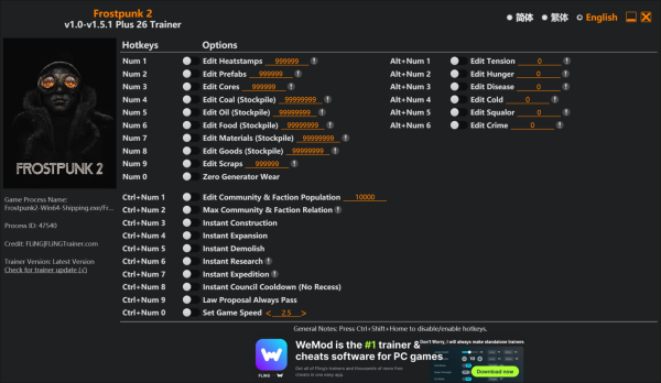 프로스트 펑크 2 핵,치트/ 트레이너 v1.0-v1.4.0+ (Frostpunk 2 Trainer)ㅣ코어 편집ㅣ석탄 편집ㅣ석유…잠시만 기다리시면 다운로드 링크가 나옵니다.